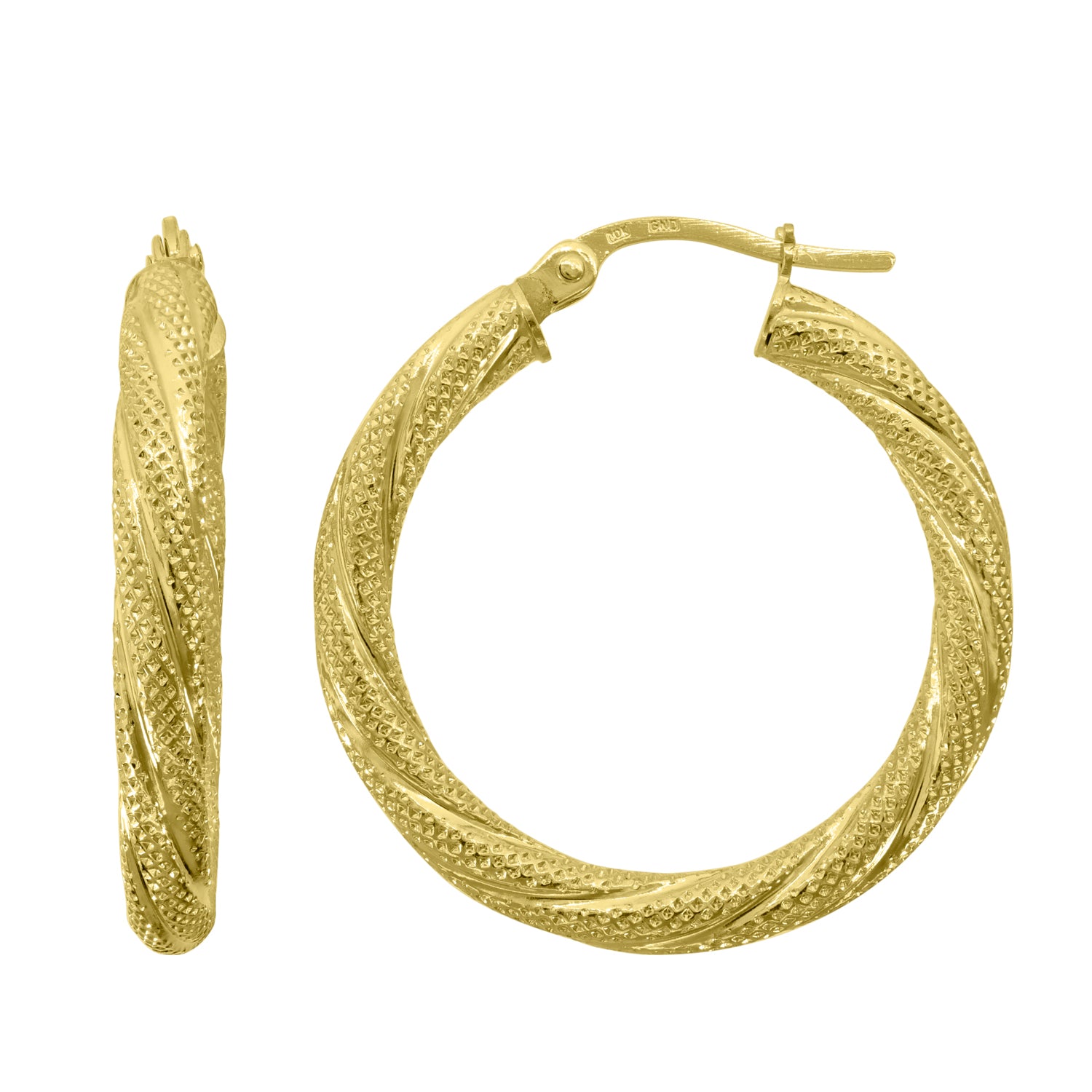 10kt Yellow Gold Womens Twisted Tube 20mm Hinged Hoops Huggies