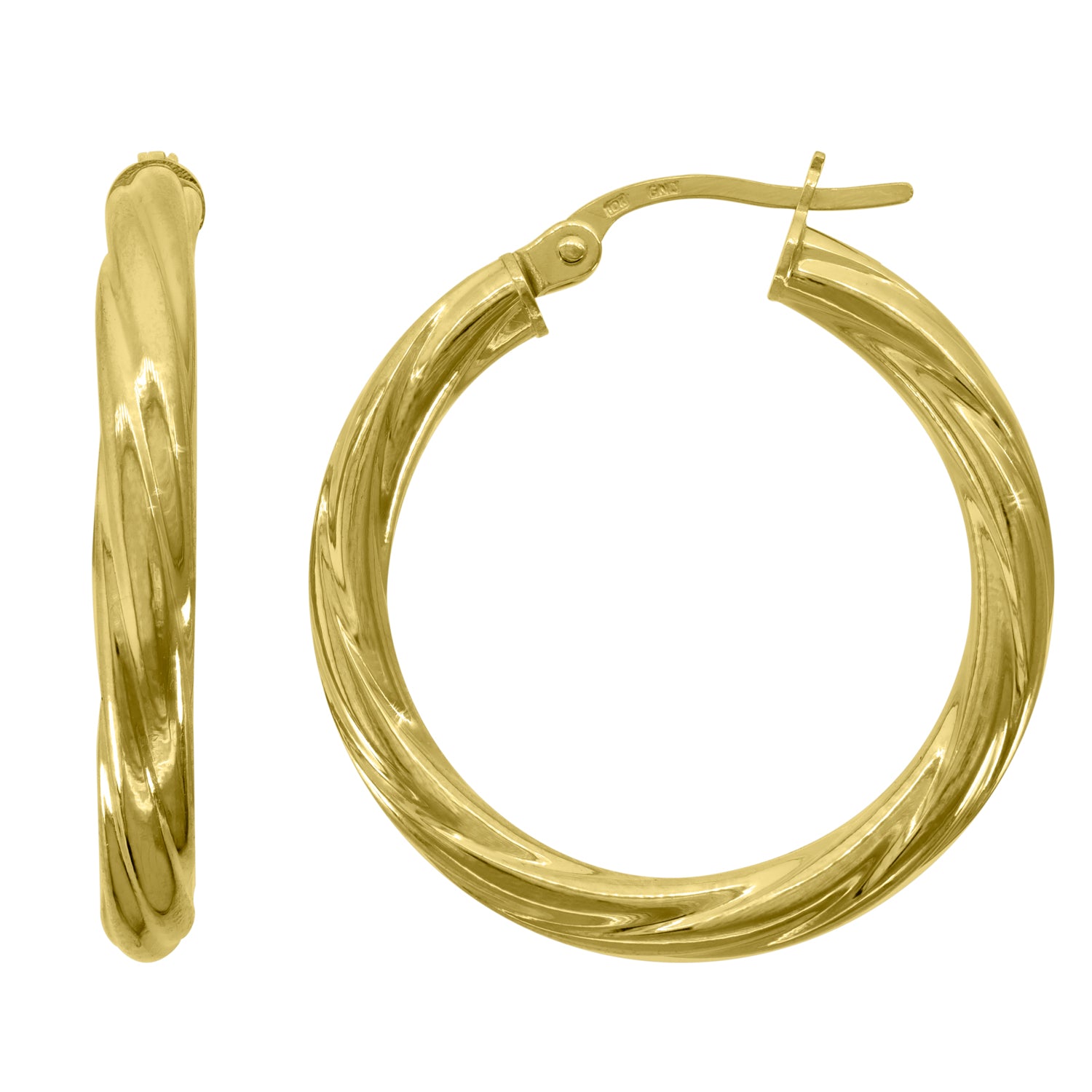 10kt Yellow Gold Womens Twisted Tube 20mm x 3mm Hinged Hoops Huggies