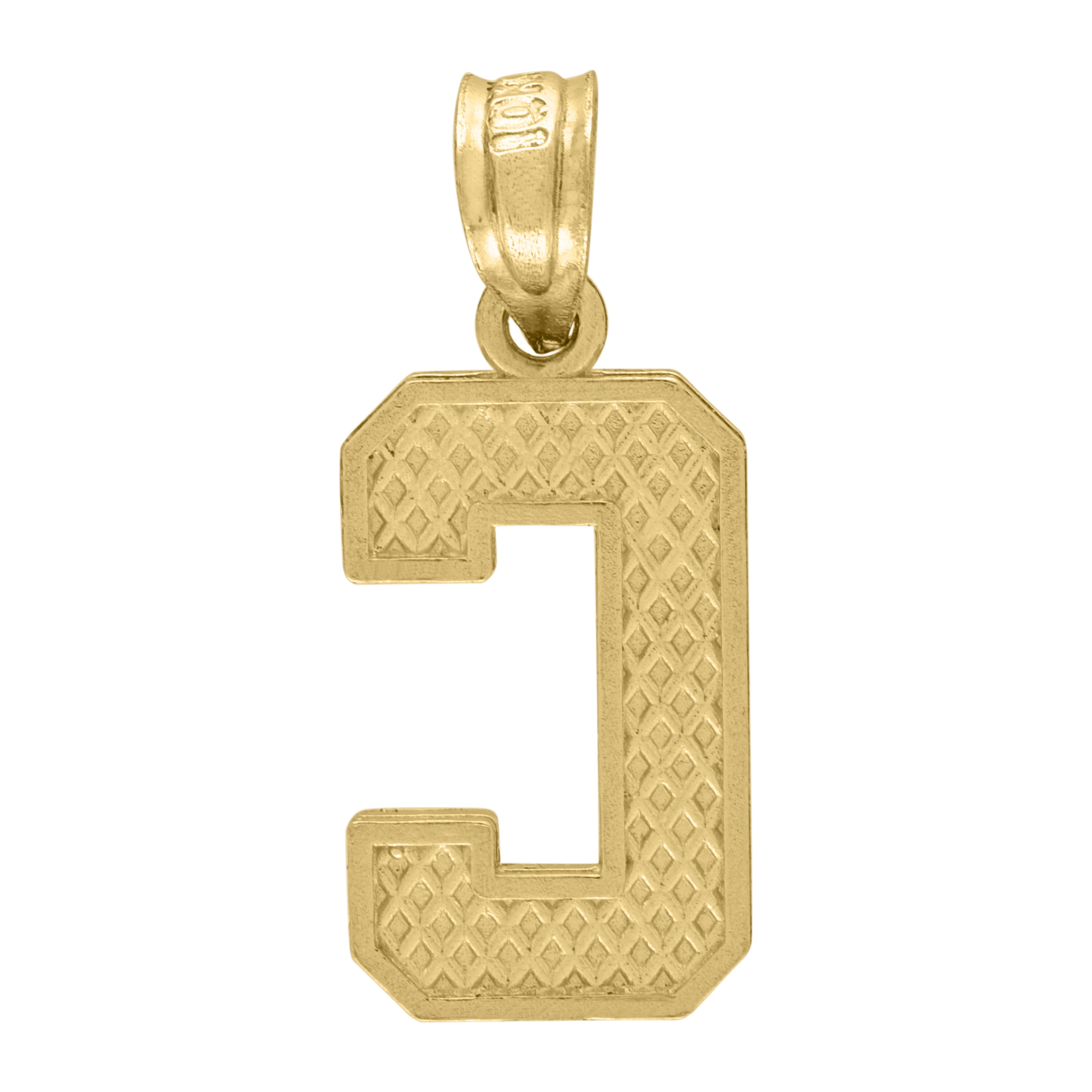 10kt Yellow Gold Unisex Textured Initial Letter C Charm Pendant
