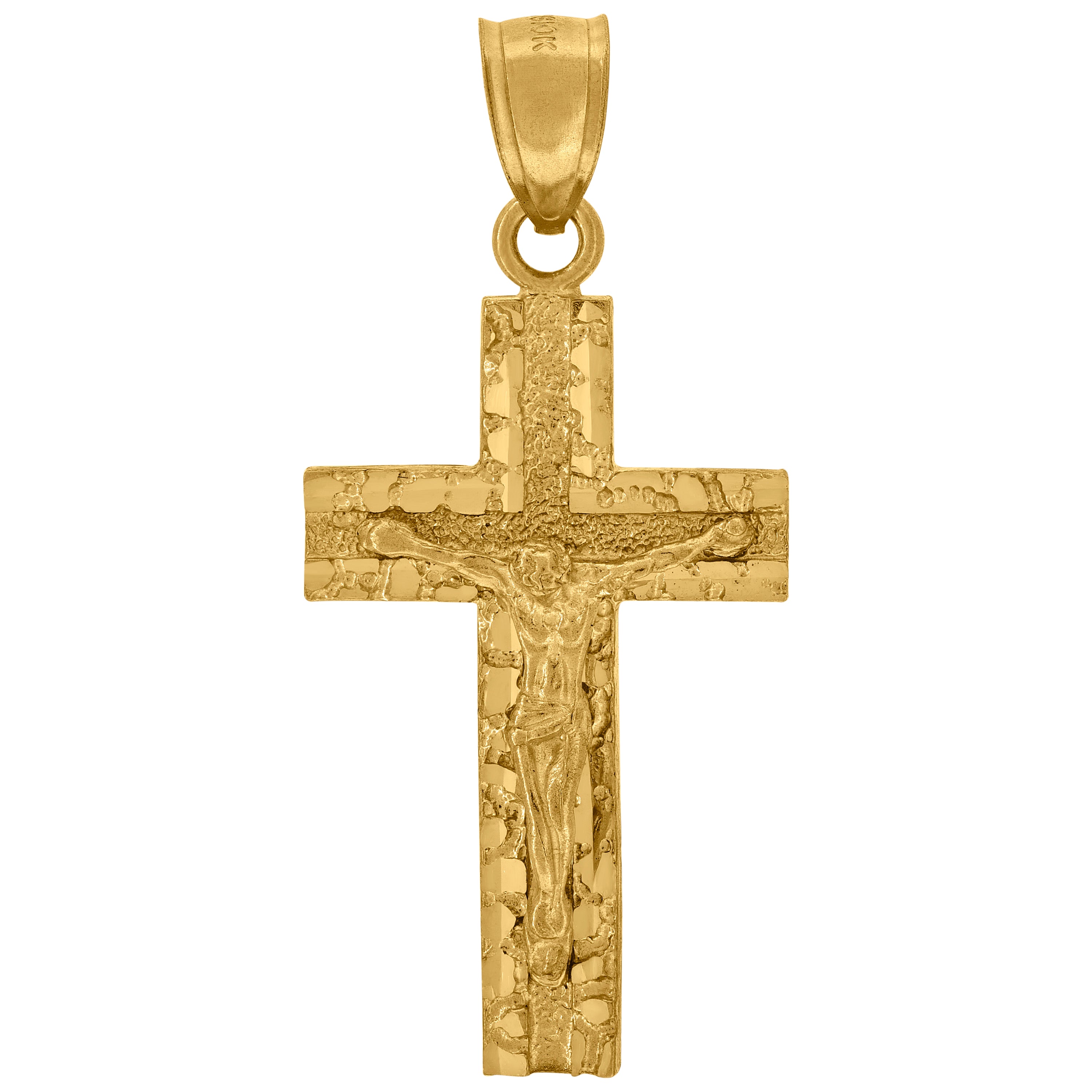 10kt Yellow Gold Mens Textured Nugget Crucifix Cross Religious Charm Pendant