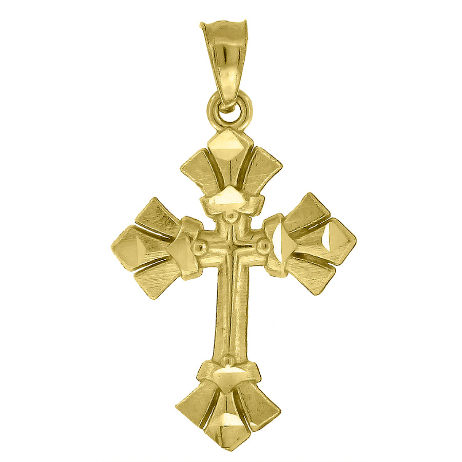 10kt Yellow Gold Diamond-cut Unisex Cross Ht:26.2mm x W:14.8mm Religious Charm Pendant