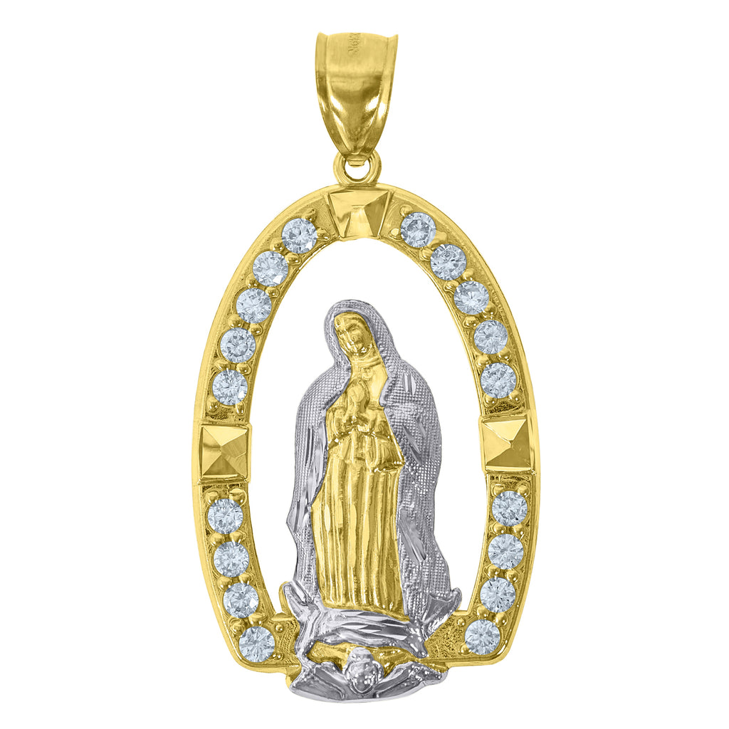 10kt Two-tone Gold Mens Women Cubic Zirconia Cubic-zirconia Lady Of Guadalupe Religious Charm Pendant