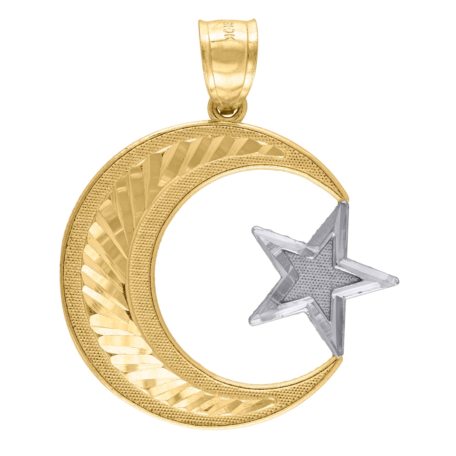 10kt Two-Tone Gold Mens Polish Finish Chand Sitara Religious Charm Pendant