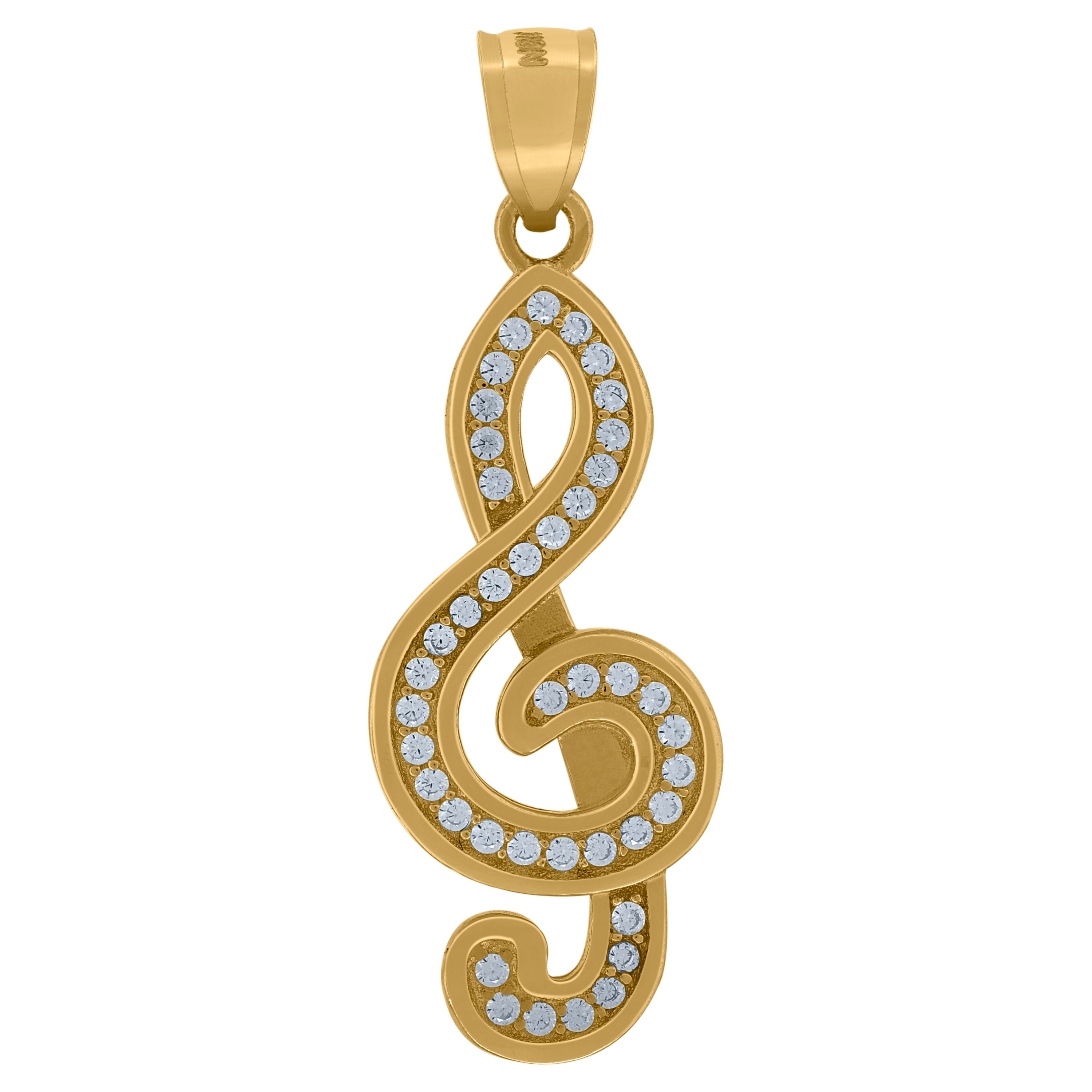 10kt Yellow Gold Mens Cubic Zirconia Treble Clef Musical Knot Charm Pendant