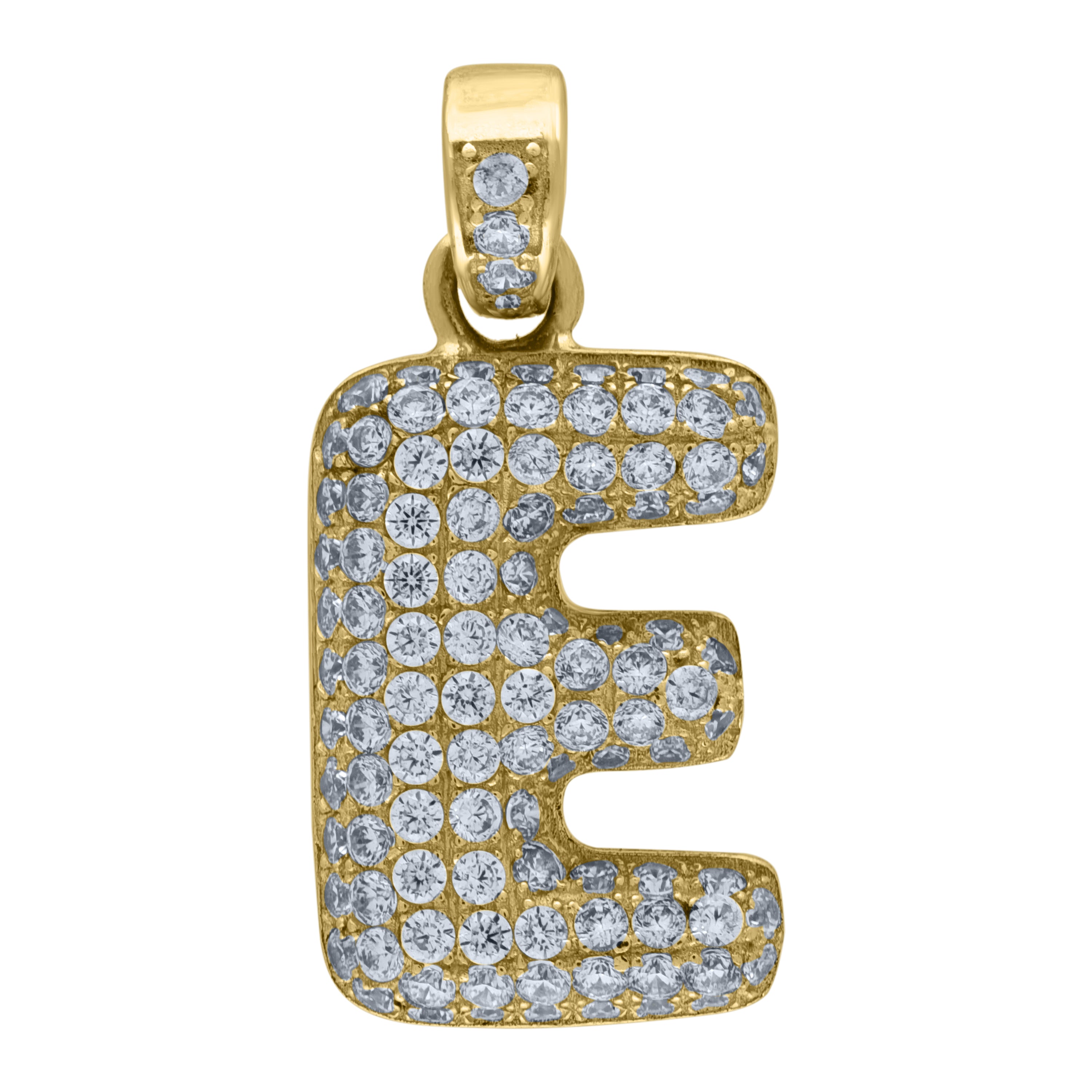 10kt Yellow Gold Unisex Cubic zirconia Bubble Initial Letter E Charm Pendant