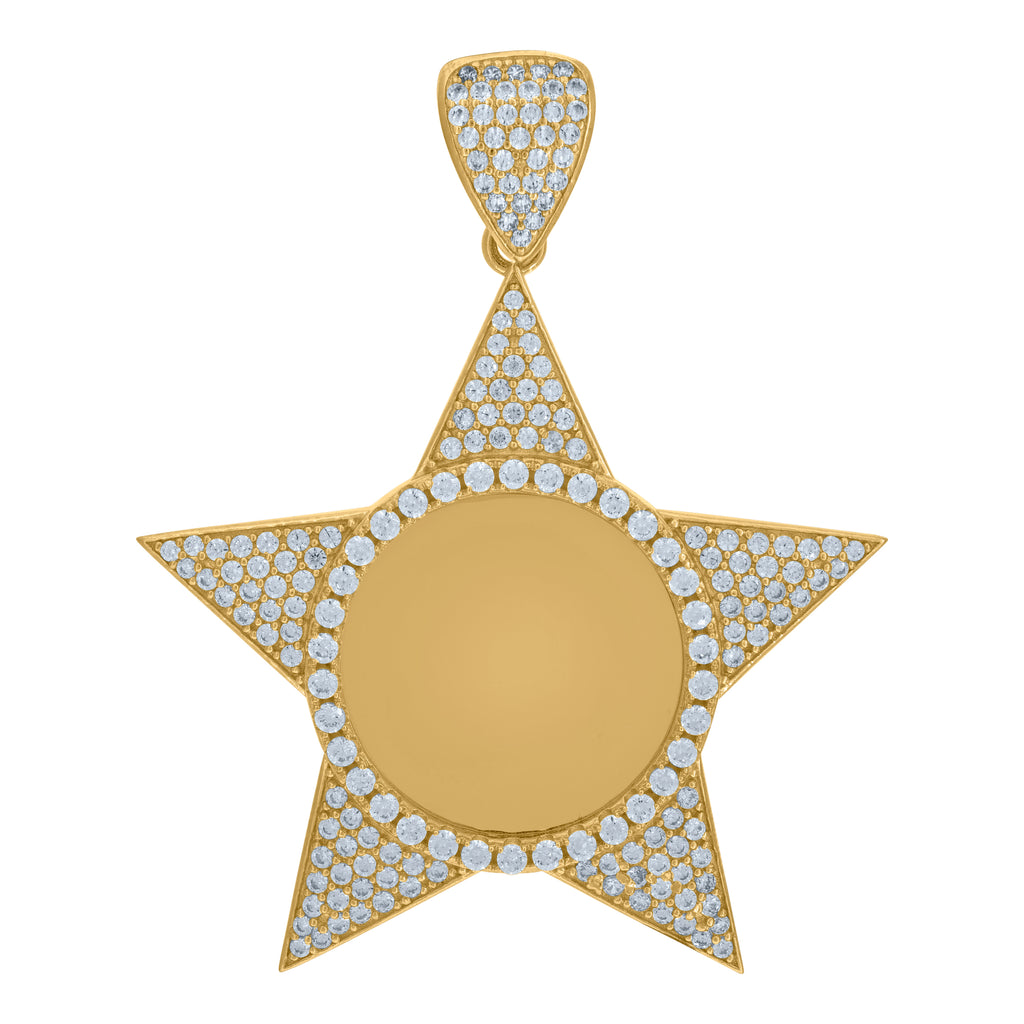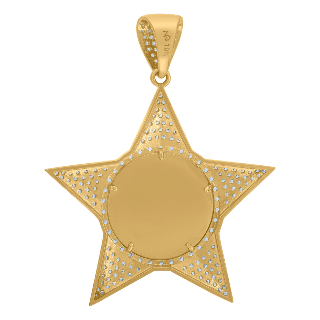 10kt Yellow Gold Mens Cubic-Zirconia Photoframe Star Charm Pendant