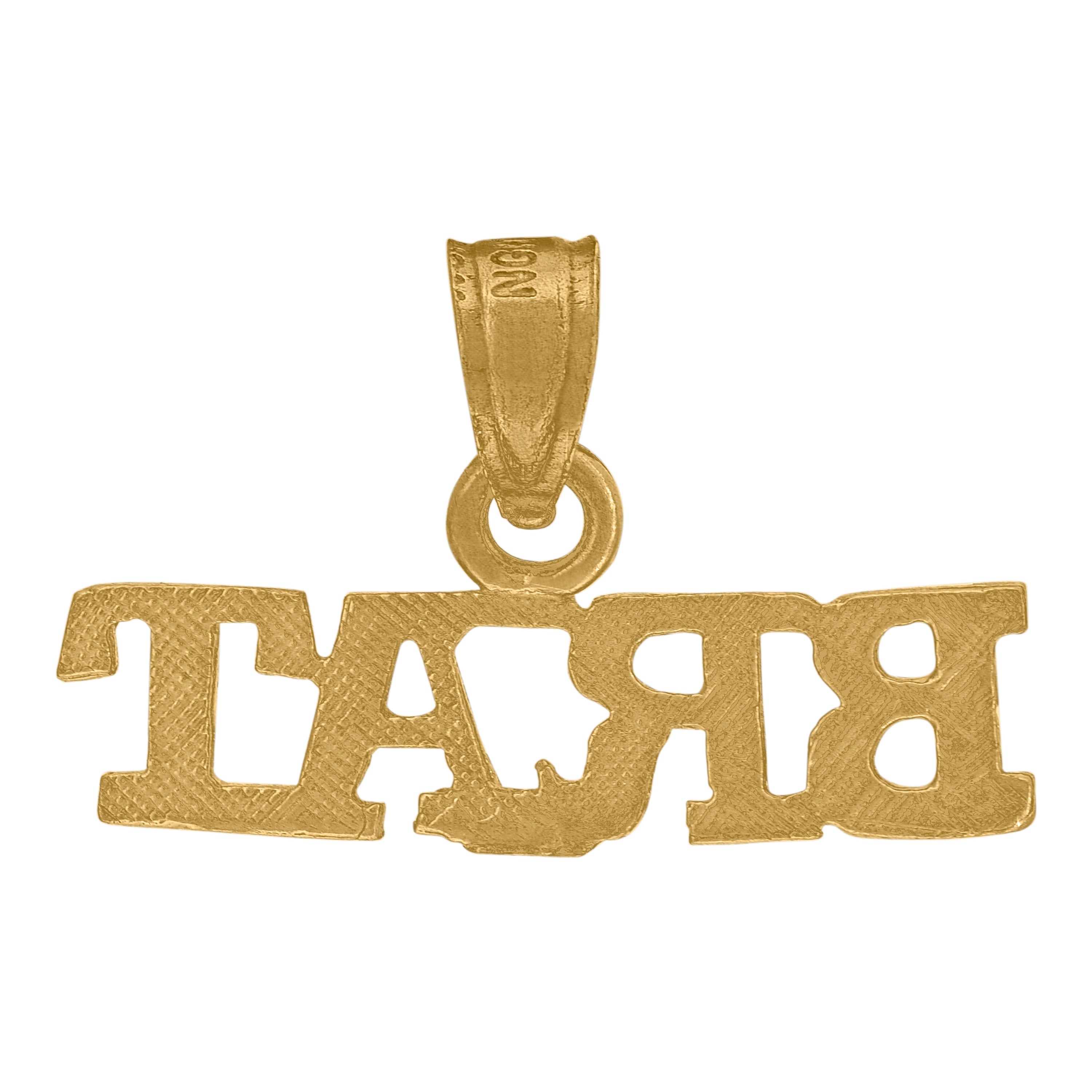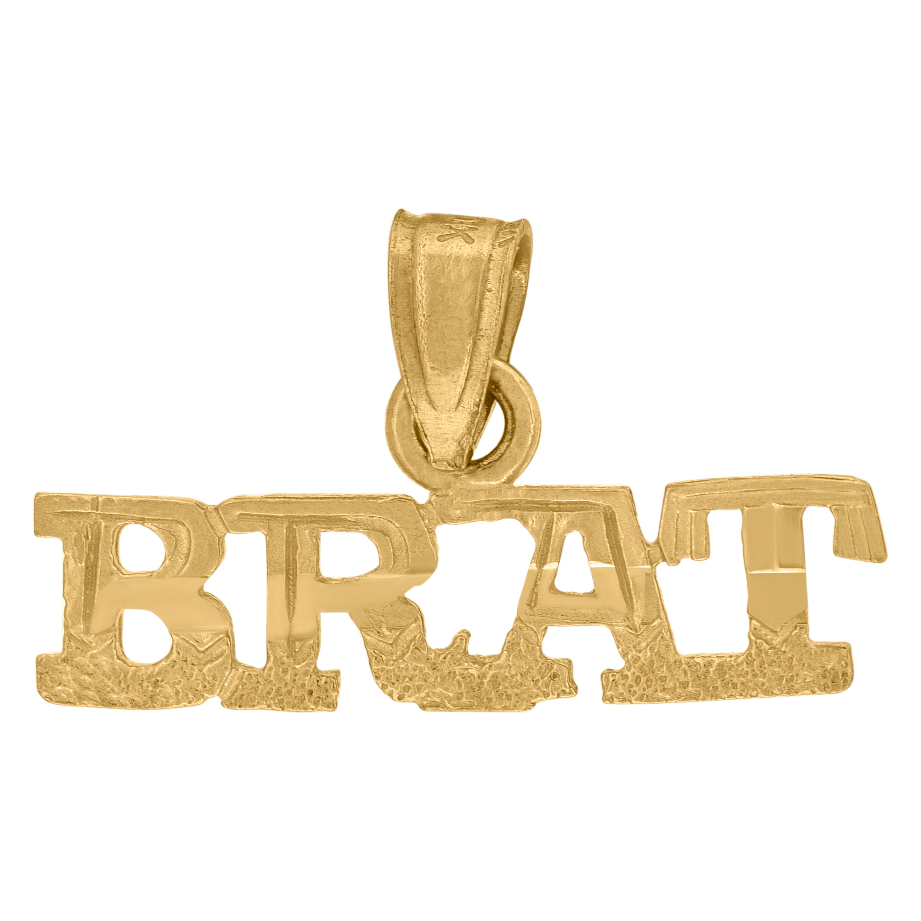 10kt Yellow Gold Textured Mens Brat Ht:12.2mm x W:18.5mm Letters & Words Charm Pendant