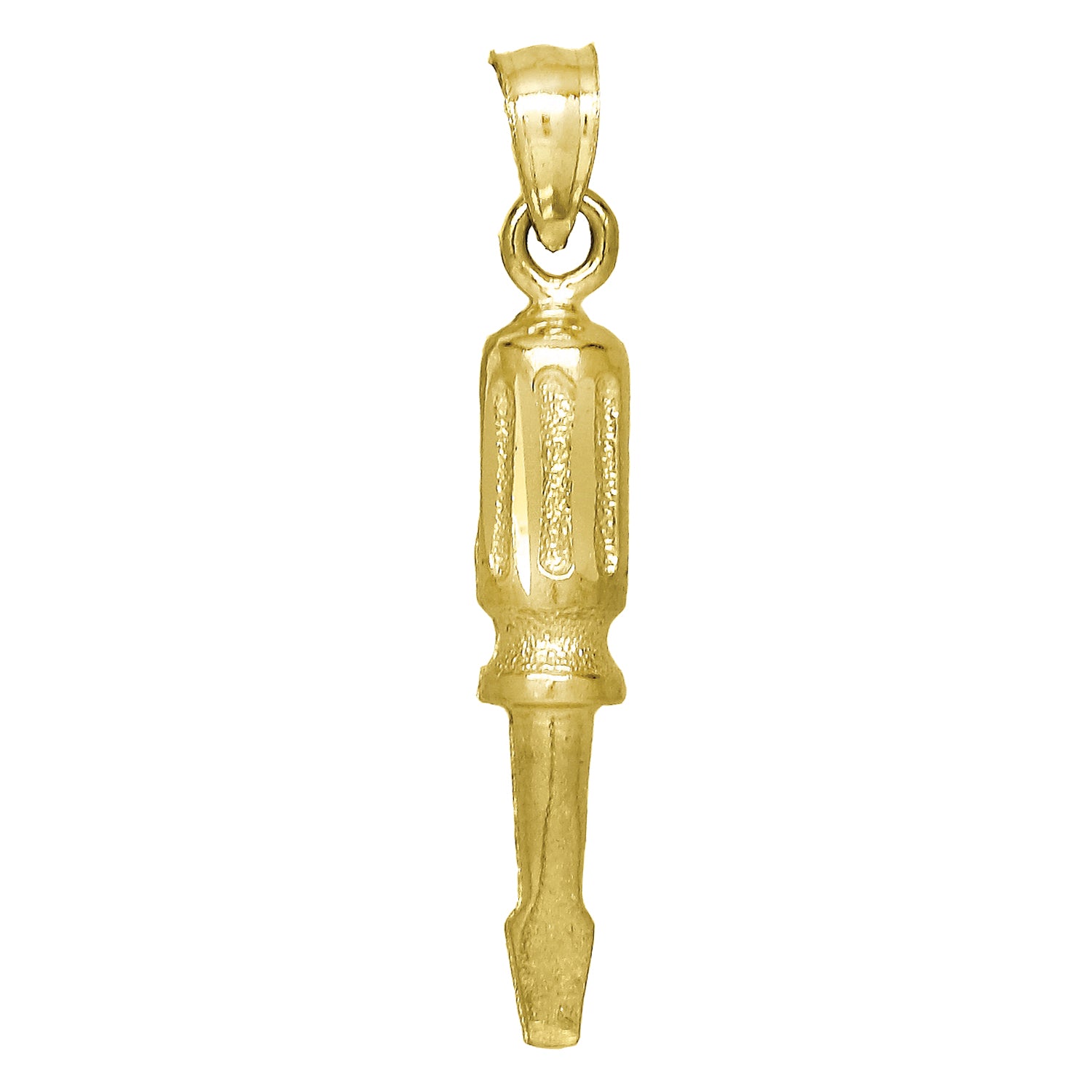10kt Yellow Gold Textured Unisex Screw Driver Ht:27.3mm x W:4.2mm Tools Charm Pendant