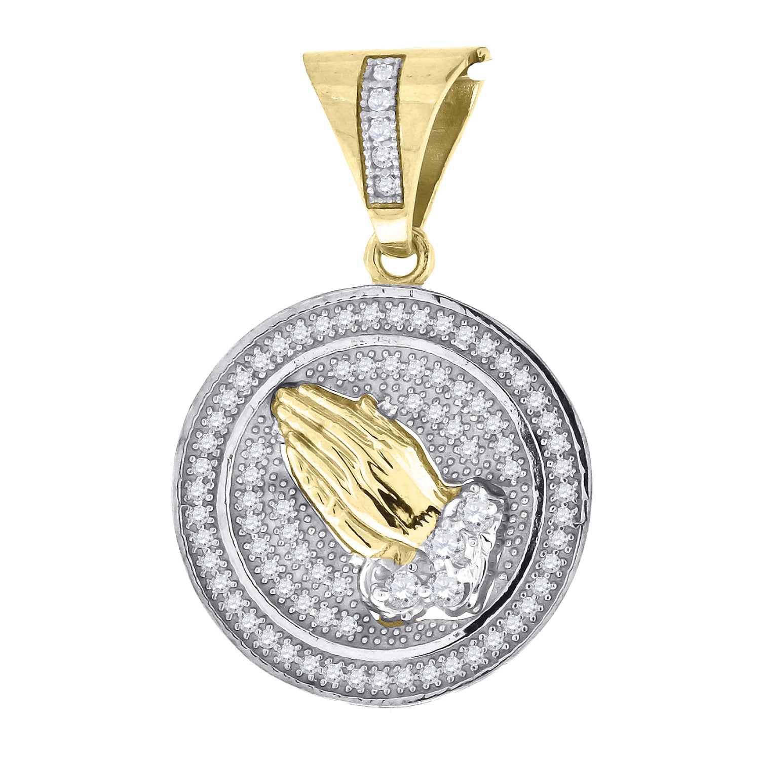 10kt Two-tone Gold Mens Women Cubic Zirconia Cubic-zirconia Praying Hands Religious Charm Pendant