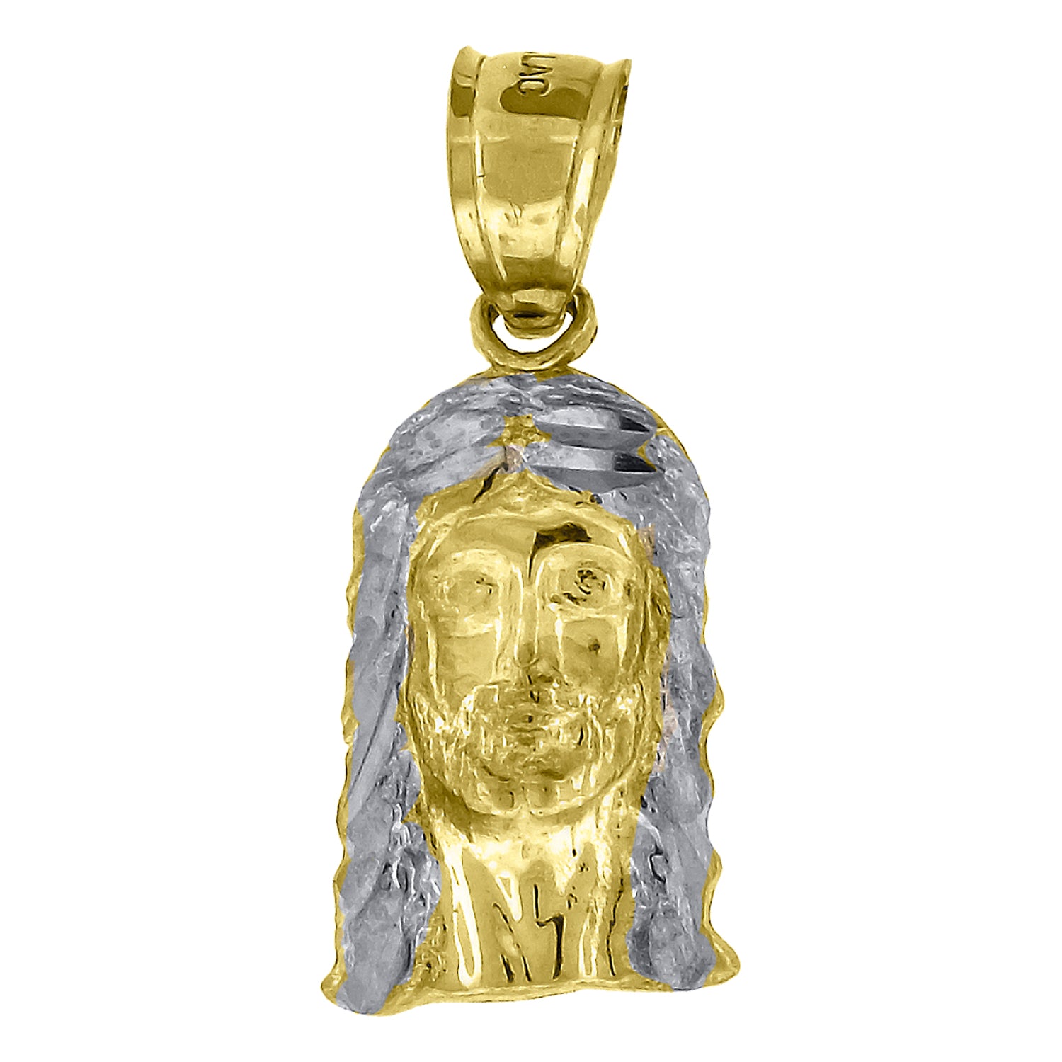 10KT Two-Tone Gold Mens Jesus Religious Charm Pendant